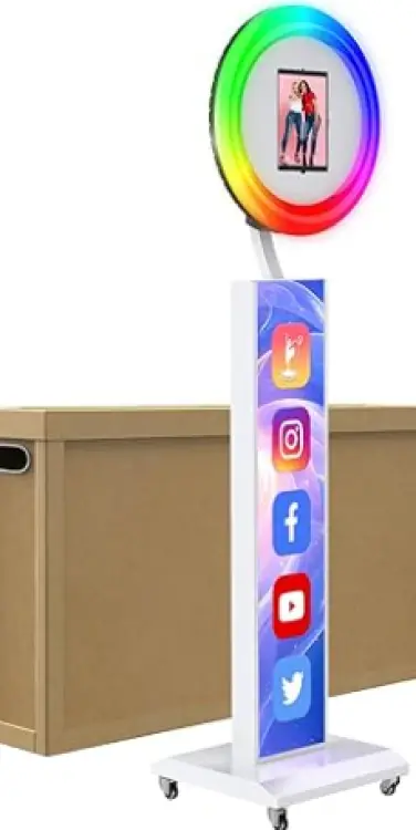 White or Black option available.The portable photo booth is designed to enhance events such as weddings, corporate gatherings, and parties. It offers a multi-function setup with rich filters, frames, digital props, and background music capabilities to enhance guest engagement. The booth supports multiple shooting modes, backgrounds, and digital props, making it suitable for various event types. The photo booth is a versatile tool that can be used for both personal and professional events, providing memorable experiences for your event.